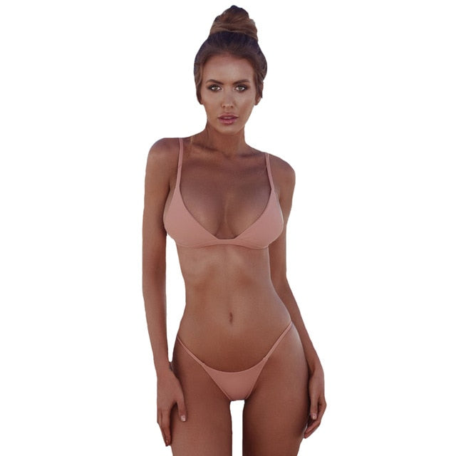 2019 New Summer Women Solid Bikini Set Push-up UnPadded Bra Swimsuit Swimwear Triangle Bather Suit Swimming Suit biquini